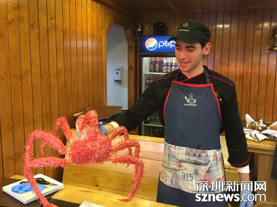 深圳新聞網(wǎng)訊 蜘蛛蟹(又名皇帝蟹)只產(chǎn)于南北兩極冰冷的海洋中,因為八條腿特長,外觀形似蜘蛛,而且觸角也比普通螃蟹多,所以被稱為蜘蛛蟹,大個的重量可達(dá)5公斤以上。智利政府規(guī)定,小于1.5公斤的不許捕撈。