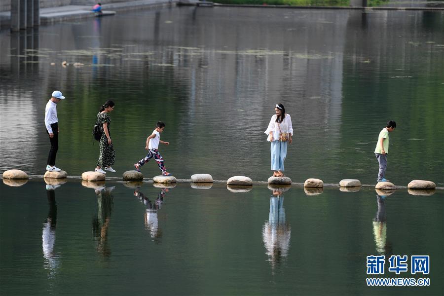游客在寧波市奉化區(qū)大堰鎮(zhèn)生態(tài)旅游區(qū)觀光游覽(2018年6月16日攝)。新華社記者 黃宗治 攝