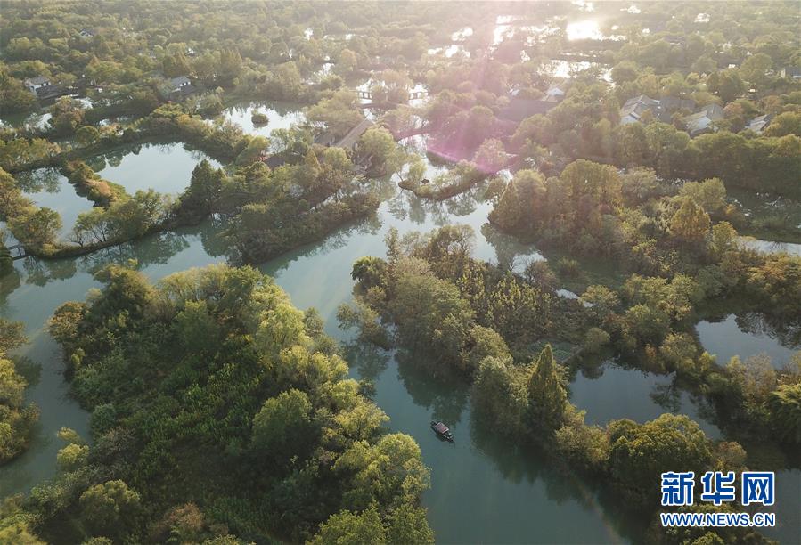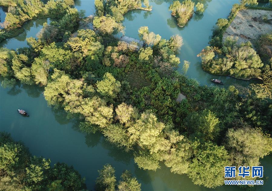這是10月29日無人機(jī)拍攝的西溪濕地。 新華社記者翁忻旸攝