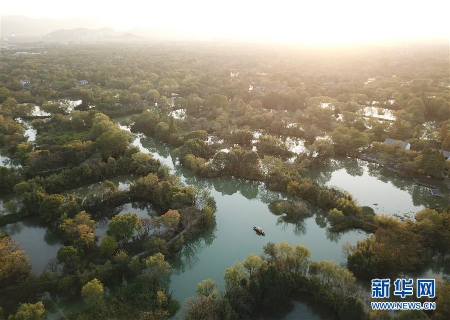 這是10月29日無人機(jī)拍攝的西溪濕地。新華社記者翁忻旸攝