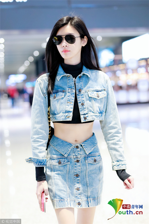 奚夢瑤一身帥氣牛仔裝 露細腰長腿顯 ...