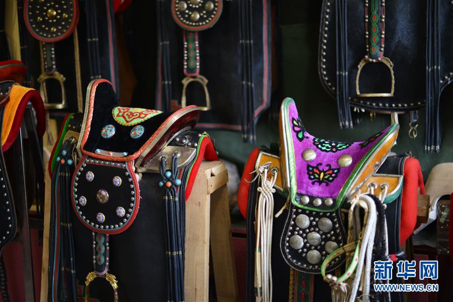 這是10月30日在內蒙古自治區(qū)通遼市科爾沁左翼后旗拍攝的套格敦白乙制作的馬鞍。新華社記者鄒予攝