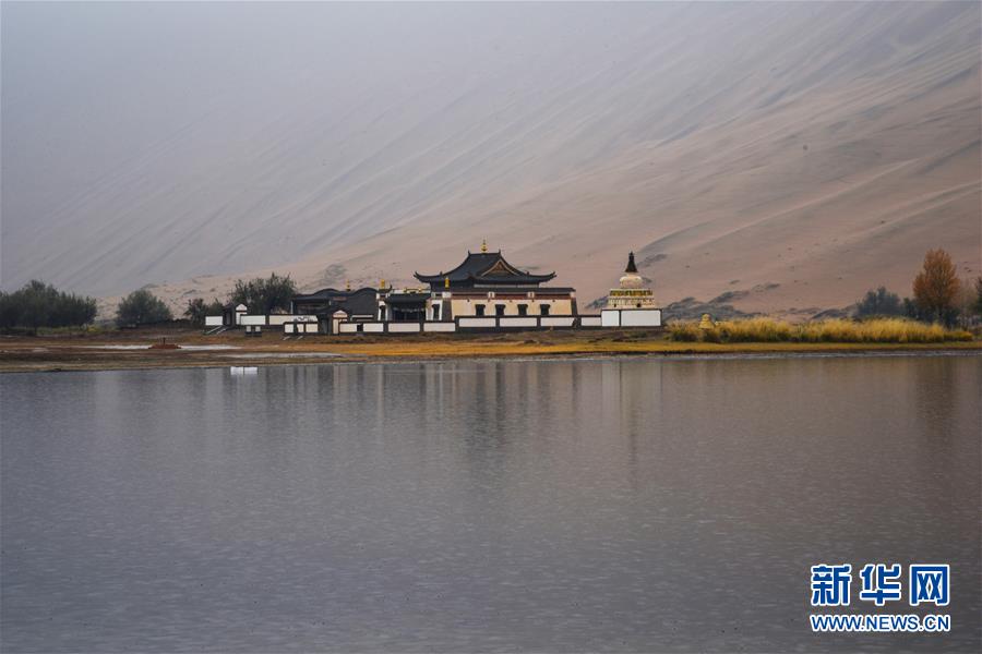 巴丹吉林廟位于名為“廟海子”的湖泊旁(10月19日攝)。巴丹吉林沙漠位于內(nèi)蒙古西部阿拉善盟,是中國(guó)第三大沙漠,沙丘起伏的曲線陡變成高聳的沙山,碧藍(lán)的湖泊散落在沙海間。新華社記者李仁虎攝