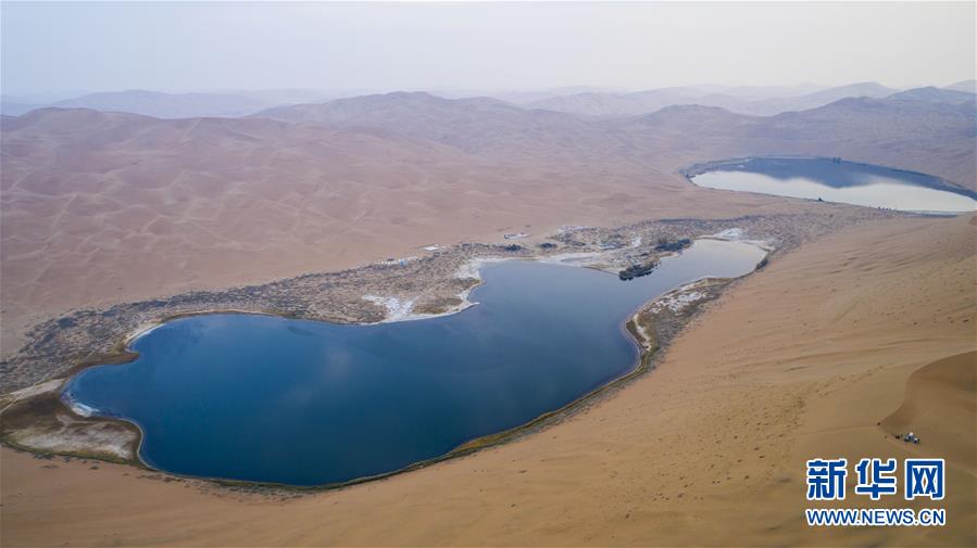 陰雨中的沙漠湖泊,常常讓人以為是一面鏡子(10月18日攝)。巴丹吉林沙漠位于內(nèi)蒙古西部阿拉善盟,是中國(guó)第三大沙漠,沙丘起伏的曲線陡變成高聳的沙山,碧藍(lán)的湖泊散落在沙海間。新華社記者李仁虎攝