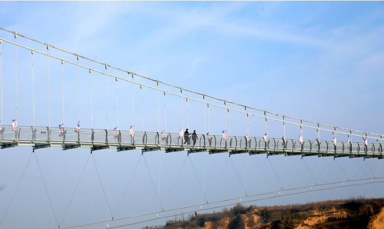 實拍地坑院景區(qū)玻璃天橋 全長318 ...