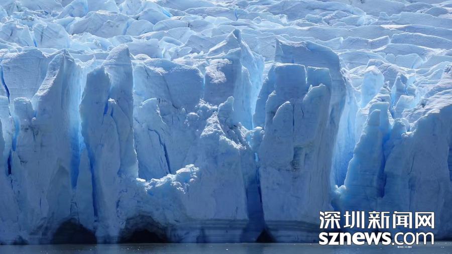 莫雷諾冰川的一段呈冰堤狀,冰堤把冰川與正對(duì)面的麥哲倫半島連接起來(lái)。隨著流水滲透沖刷,冰堤下部最終會(huì)形成一個(gè)拱門(mén)。當(dāng)拱門(mén)上方的冰墻漸漸支撐不住時(shí),便會(huì)轟然崩塌。  李仁奇 攝