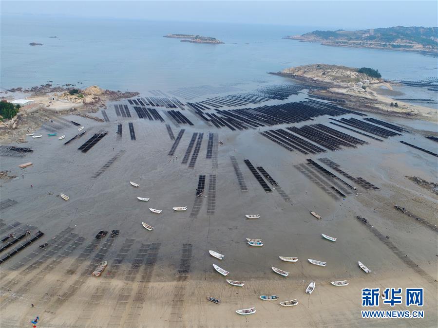 福建莆田蔣山村的千畝紫菜種植基地(10月24日無(wú)人機(jī)拍攝)?! ⌒氯A社記者姜克紅 攝