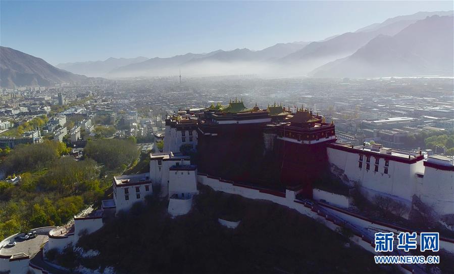 修繕后的布達拉宮金頂群(11月7日攝)。