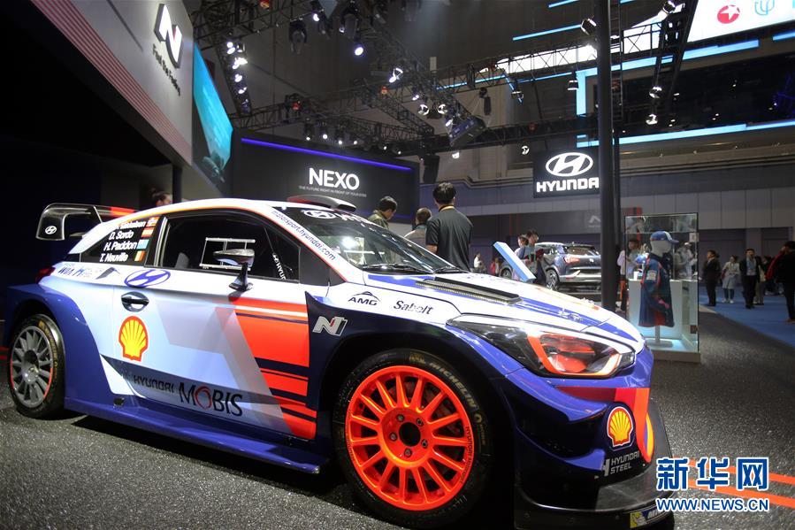 這是11月7日在現(xiàn)代展位拍攝的i20 WRC賽車。新華社記者 張譽(yù)東 攝
