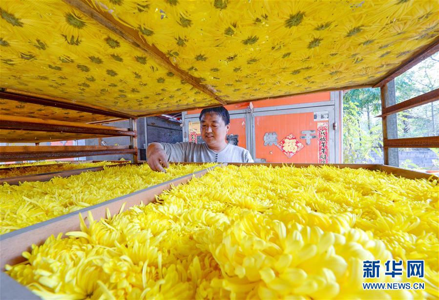 11月7日,河北省魏縣魏城鎮(zhèn)町上村農民在分揀準備烘干的菊花。 新華社記者 朱旭東 攝