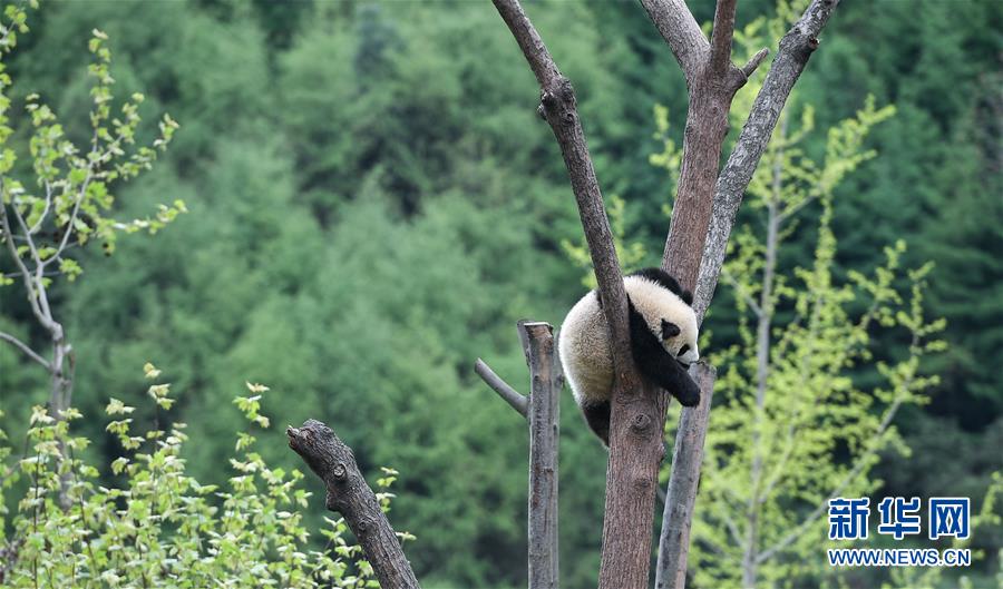這是在中國大熊貓保護研究中心臥龍神樹坪基地拍攝的大熊貓(2018年4月25日攝)。 新華社記者 薛玉斌 攝