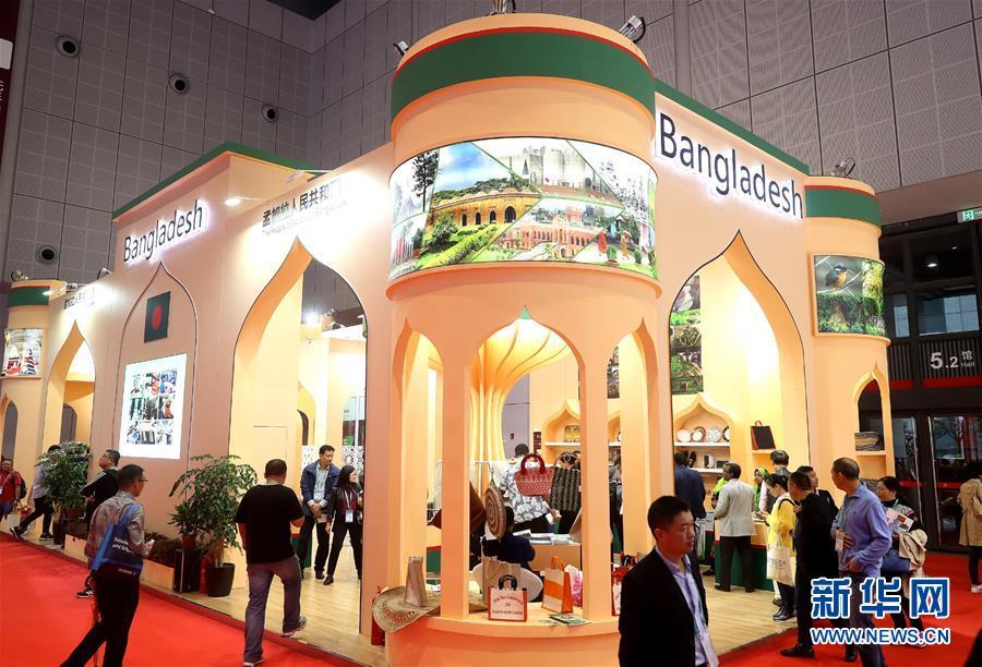 這是11月7日拍攝的孟加拉國展區(qū)。 中國國際進口博覽會11月5日在上海開幕。國家貿(mào)易投資綜合展(國家展)是中國國際進口博覽會的重要內(nèi)容,共有82個國家、3個國際組織設立71個展臺。 新華社記者 陳飛 攝