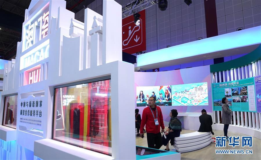 11月8日,人們在中國館澳門展區(qū)參觀。 中國國際進口博覽會11月5日在上海開幕。國家貿(mào)易投資綜合展(國家展)是中國國際進口博覽會的重要內(nèi)容,共有82個國家、3個國際組織設立71個展臺。 新華社記者 程麗 攝