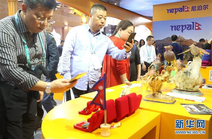 11月7日,人們在尼泊爾展區(qū)參觀。 中國國際進口博覽會11月5日在上海開幕。國家貿(mào)易投資綜合展(國家展)是中國國際進口博覽會的重要內(nèi)容,共有82個國家、3個國際組織設立71個展臺。 新華社記者 陳飛 攝