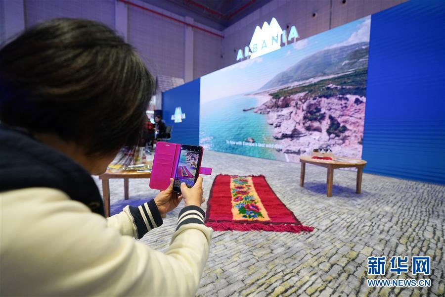 11月7日,在阿爾巴尼亞展區(qū),一名參觀者拍攝當?shù)厣a(chǎn)的地毯。 中國國際進口博覽會11月5日在上海開幕。國家貿(mào)易投資綜合展(國家展)是中國國際進口博覽會的重要內(nèi)容,共有82個國家、3個國際組織設立71個展臺。 新華社記者 王天聰 攝
