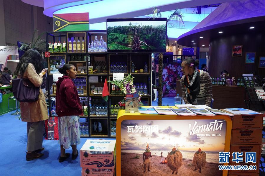 這是11月8日拍攝的太平洋島國展區(qū)瓦努阿圖展臺。 中國國際進口博覽會11月5日在上海開幕。國家貿(mào)易投資綜合展(國家展)是中國國際進口博覽會的重要內(nèi)容,共有82個國家、3個國際組織設立71個展臺。 新華社記者 程麗 攝