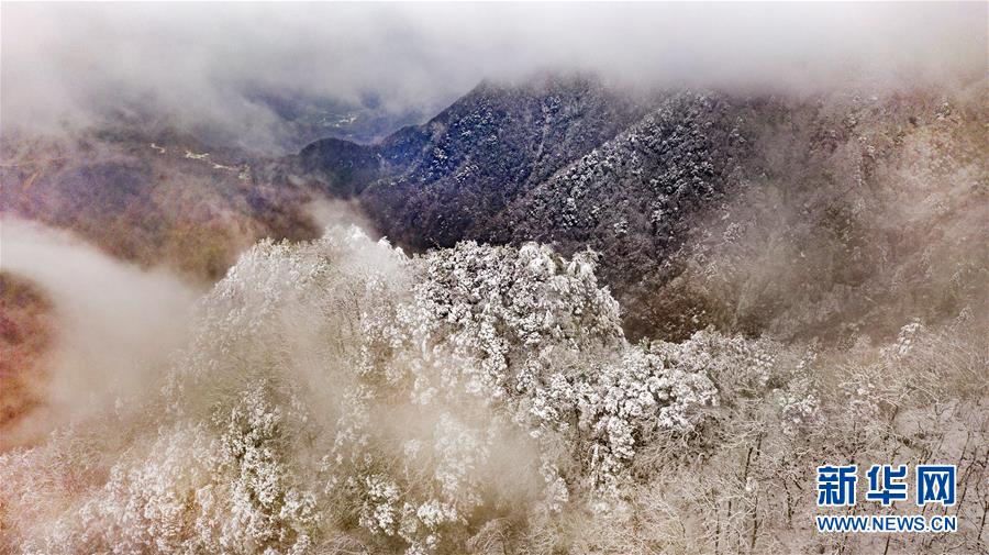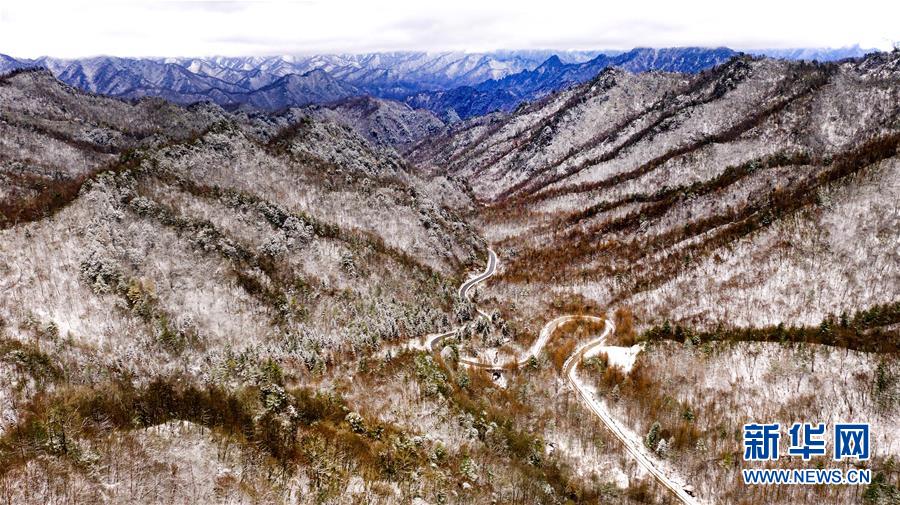 11月5日無人機(jī)拍攝的陜西省漢中市佛坪縣涼風(fēng)埡景區(qū)雪景。  新華社記者陶明攝