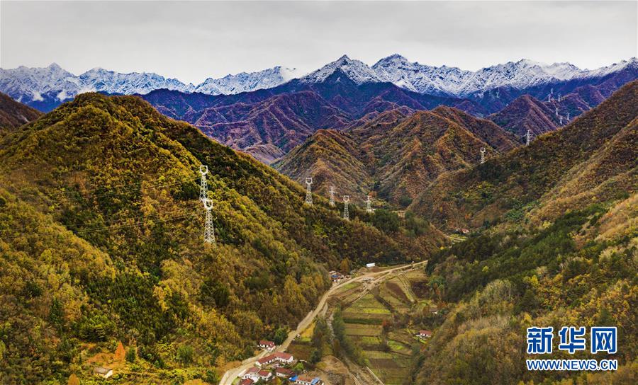 11月5日無人機(jī)拍攝的陜西省漢中市佛坪縣城旁的秦嶺景色。  新華社記者陶明攝