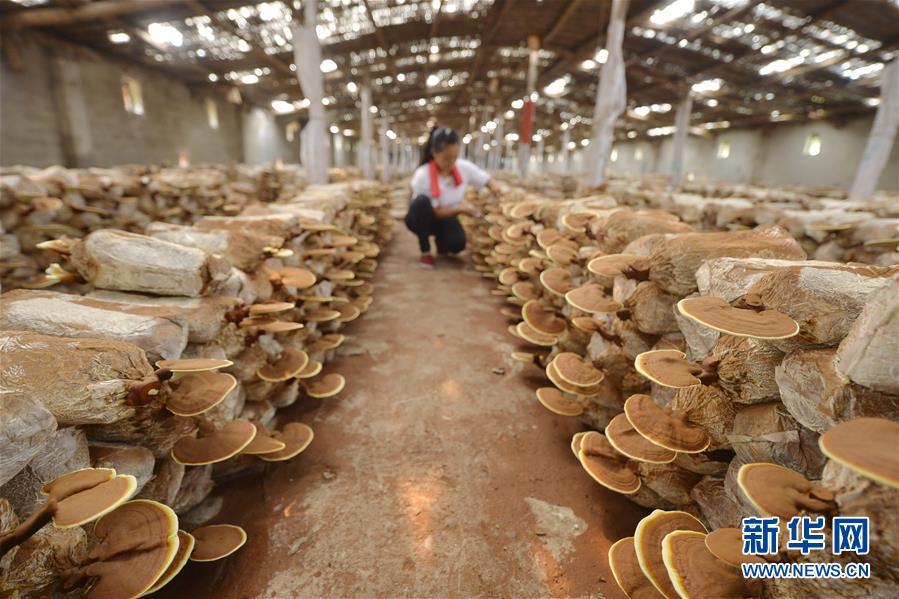8月22日,河北省沙河市蟬房鄉(xiāng)水磨頭村農(nóng)民在大棚內(nèi)管理種植的靈芝。 新華社記者 牟宇 攝