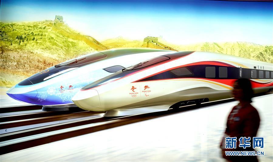 11月8日,一位志愿者從進(jìn)博會中國館一幅高鐵概念圖前走過。 新華社記者 陳建力 攝