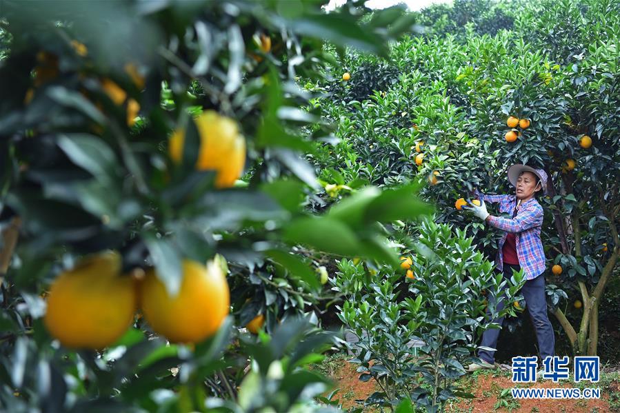 近日,江西省贛州市尋烏縣近20萬(wàn)畝果園進(jìn)入豐收采摘期,當(dāng)?shù)毓r(nóng)抓住晴好天氣開(kāi)始采摘臍橙,果園一派繁忙景象。新華社記者 萬(wàn)象 攝