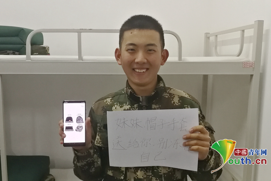 “俺們東北那旮瘩冬天特別冷,給妹妹買(mǎi)個(gè)防寒帽和棉手套,這樣上學(xué)就不會(huì)冷了。”武警北京總隊(duì)執(zhí)勤第二支隊(duì)供圖。