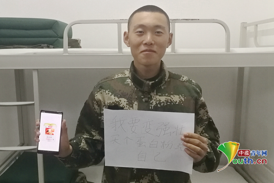 “班長(zhǎng)總說(shuō)我太瘦,買(mǎi)罐蛋白粉,我要快點(diǎn)變強(qiáng)壯?!蔽渚本┛傟?duì)執(zhí)勤第二支隊(duì)供圖。