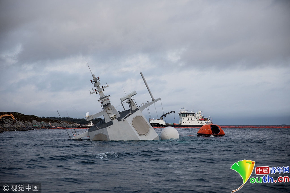 挪威:被撞翻的海軍護(hù)衛(wèi)艦打撈出水