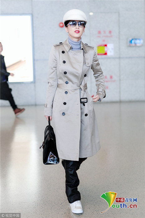 2018年11月14日,黃圣依現(xiàn)身機(jī)場(chǎng),從上海飛往北京。她頭戴白色帽子身穿白色大衣超時(shí)髦,展露迷人微笑,手插衣兜秀無敵氣場(chǎng)。