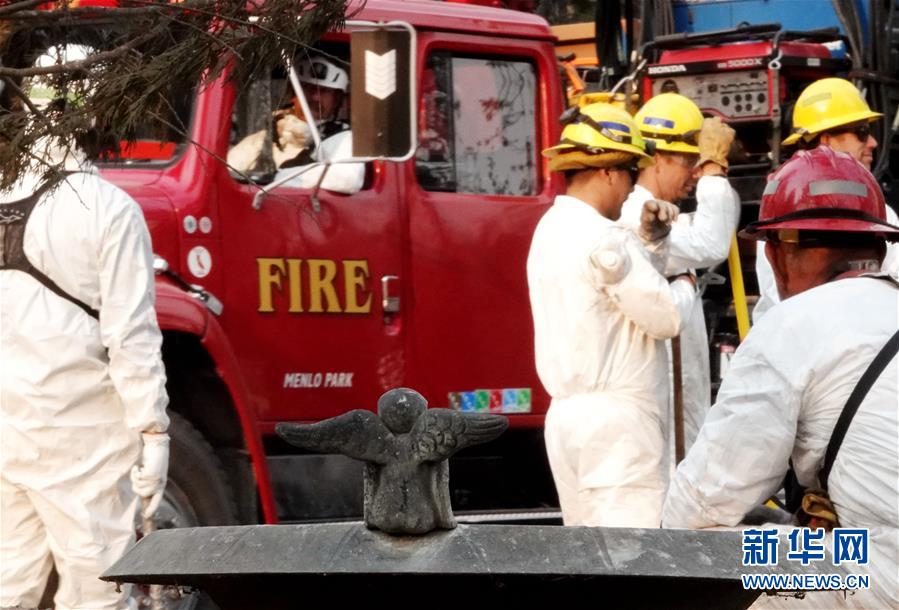 11月19日,在美國(guó)加利福尼亞州比尤特縣天堂鎮(zhèn),救援人員在山火廢墟中工作。新華社記者吳曉凌攝