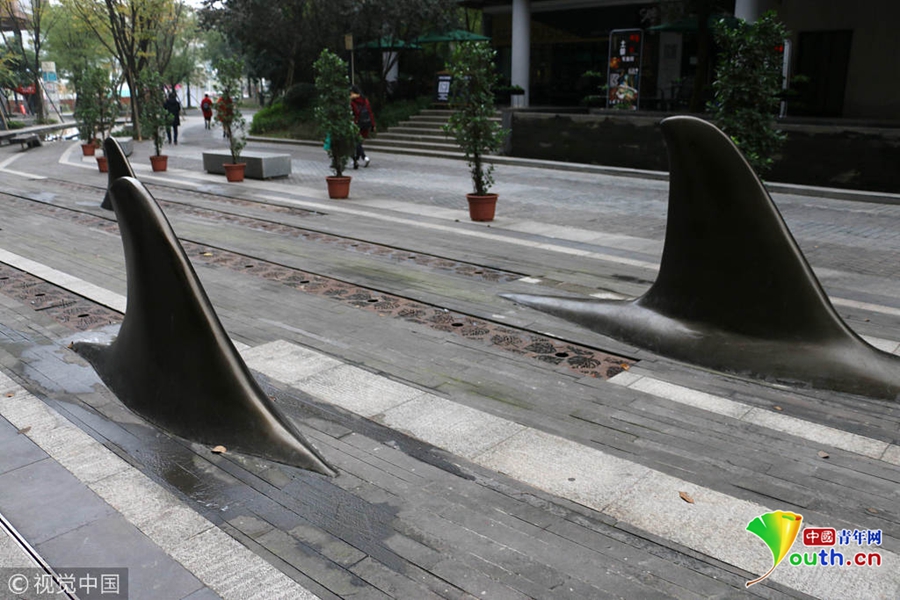 2018年11月20日,重慶一園區(qū)內(nèi)馬路中間突出一排“鯊魚鰭”,司機(jī)路人都被“嚇懵”了。突出的鯊魚鰭將兩側(cè)的車行道分開,原來,這是為了進(jìn)一步保證車流的有序進(jìn)出和行人過街安全,同時(shí)也為了防止亂停車占用人行道,設(shè)置了這種異形“隔離樁”。圖片來源:視覺中國