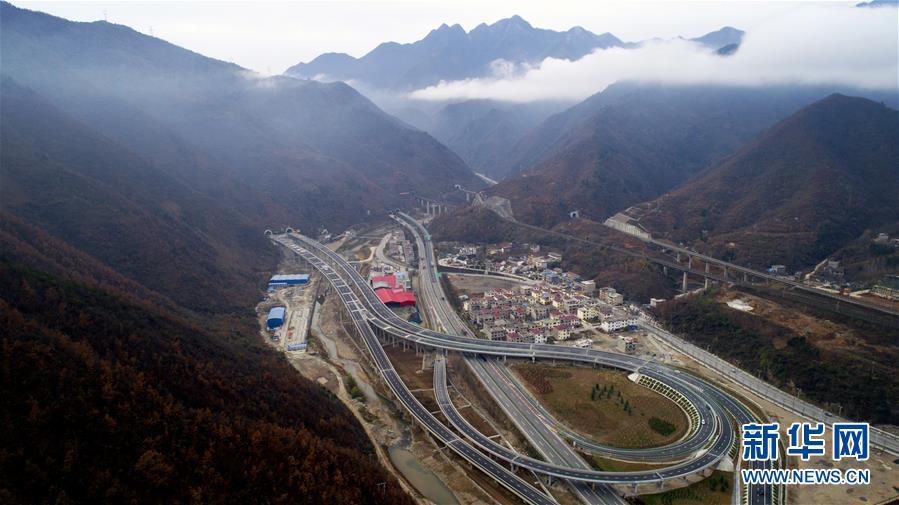 11月20日拍攝的水陽高速公路與包茂高速公路相接的樞紐互通式立交(無人機拍攝)。 近日,記者從陜西省交通建設集團公司了解到,陜西柞水至山陽高速公路已全線貫通即將通車。據(jù)介紹,(柞)水(山)陽高速公路全長78.8公里,開通后將實現(xiàn)包茂高速、福銀高速在陜南商洛地區(qū)的連接,開辟出秦嶺南麓的一條橫向高速大通道,對完善陜西高速公路路網(wǎng)結構、促進陜南區(qū)域經(jīng)濟發(fā)展、加快山區(qū)群眾脫貧致富具有重要意義。 新華社記者劉瀟攝