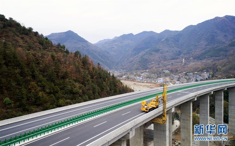 11月20日,在水陽高速公路左家灣特大橋上,橋梁檢測(cè)車在進(jìn)行通車前的檢測(cè)作業(yè)(無人機(jī)拍攝)。 近日,記者從陜西省交通建設(shè)集團(tuán)公司了解到,陜西柞水至山陽高速公路已全線貫通即將通車。據(jù)介紹,(柞)水(山)陽高速公路全長78.8公里,開通后將實(shí)現(xiàn)包茂高速、福銀高速在陜南商洛地區(qū)的連接,開辟出秦嶺南麓的一條橫向高速大通道,對(duì)完善陜西高速公路路網(wǎng)結(jié)構(gòu)、促進(jìn)陜南區(qū)域經(jīng)濟(jì)發(fā)展、加快山區(qū)群眾脫貧致富具有重要意義。 新華社記者劉瀟攝