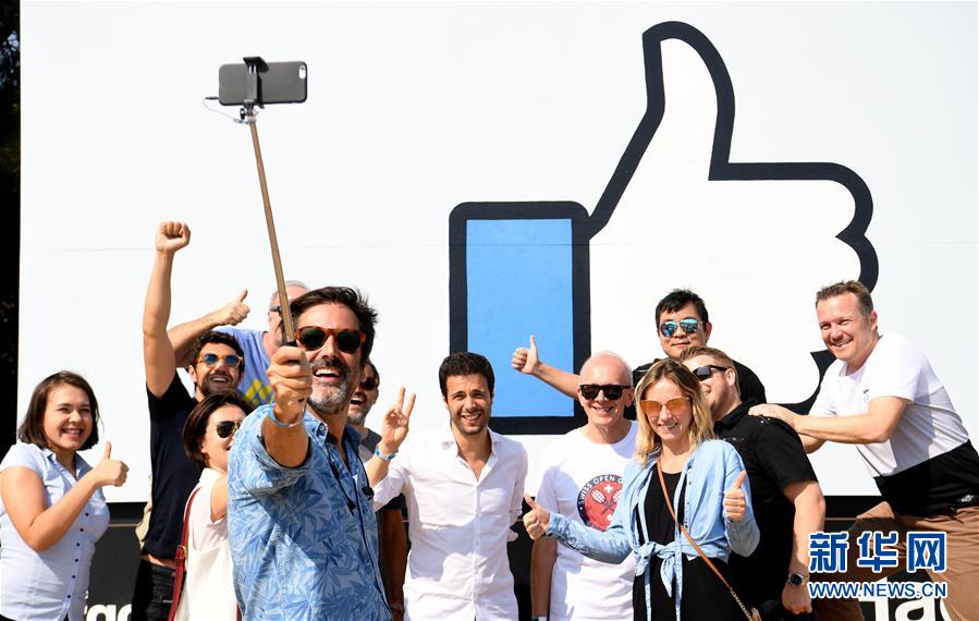 8月11日,在美國舊金山灣區(qū),參加“臉書節(jié)”的游客在臉書園區(qū)標(biāo)志前合影。當(dāng)日,舊金山灣區(qū)臉書園區(qū)舉行“臉書節(jié)”,人們在活動中欣賞文藝表演,品嘗美食,乘坐游樂設(shè)施等,活動收入將捐給慈善團(tuán)體。新華社記者吳曉凌攝