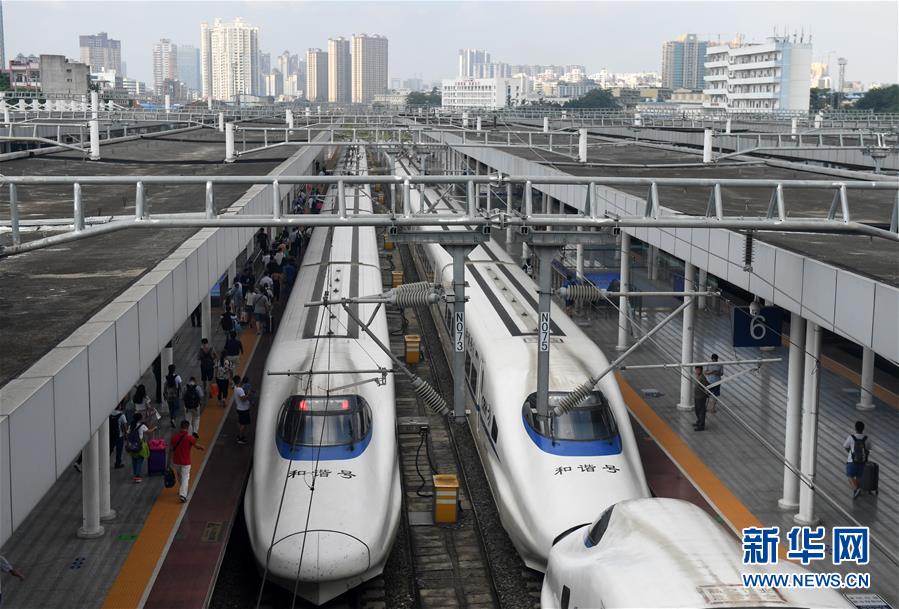 在廣西南寧東站,旅客在排隊(duì)候車(chē),準(zhǔn)備出行(9月4日攝)。 廣西壯族自治區(qū)成立60年來(lái),鐵路建設(shè)發(fā)生翻天覆地的變化。來(lái)自中國(guó)鐵路南寧局集團(tuán)有限公司的數(shù)據(jù)顯示,1958年廣西鐵路總里程為1346.3公里,如今廣西鐵路總里程達(dá)5191公里。廣西與周邊相鄰省份間實(shí)現(xiàn)動(dòng)車(chē)“公交化”開(kāi)行。此外,北部灣港—重慶班列、東盟海產(chǎn)品冷鏈班列、“百色一號(hào)”果蔬專(zhuān)列等的開(kāi)通和運(yùn)營(yíng),強(qiáng)化了鐵路供給的針對(duì)性和有效性。鐵路成為助推廣西經(jīng)濟(jì)社會(huì)快速發(fā)展的“大動(dòng)脈”。 新華社記者陸波岸攝