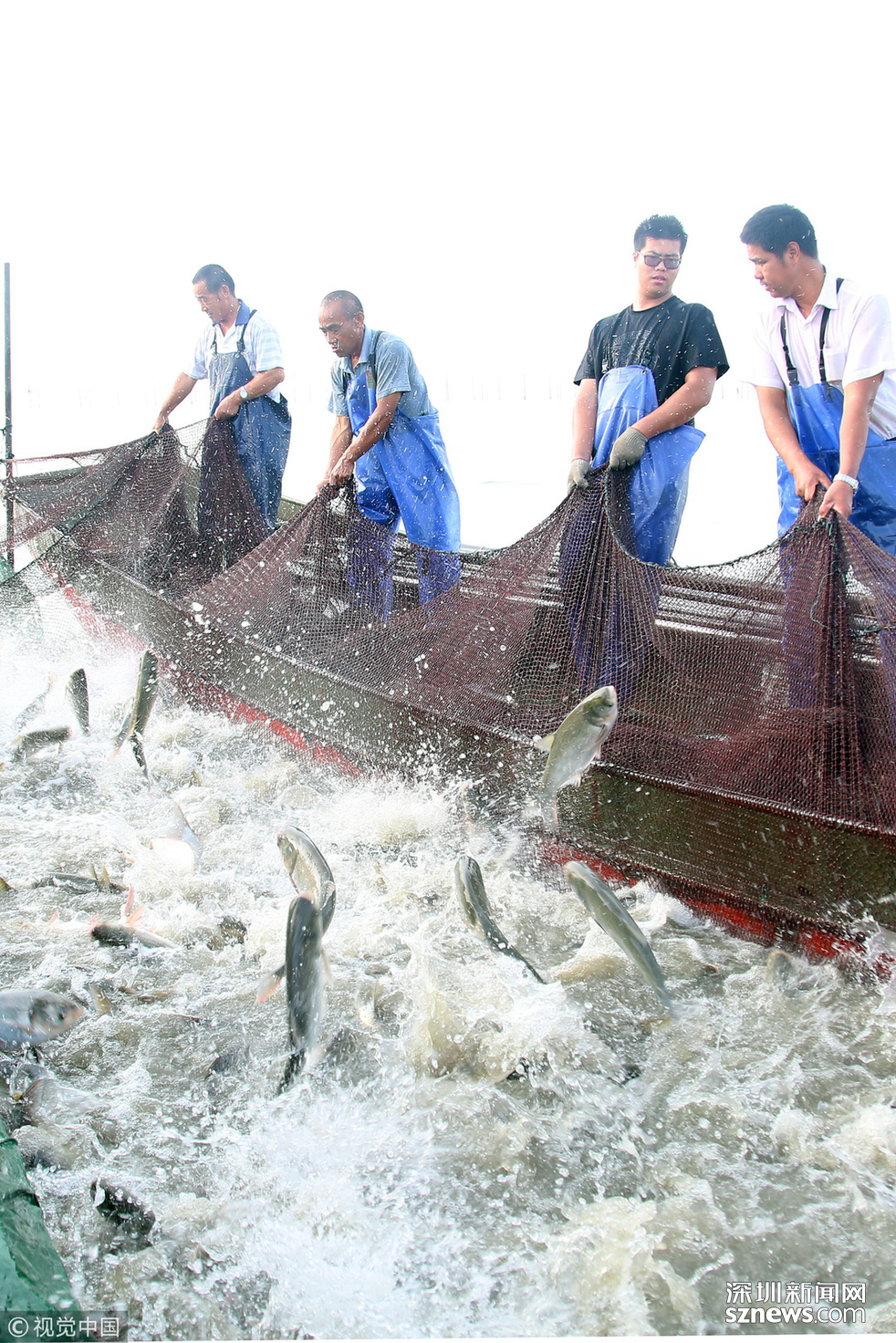 2018年6月26日,江蘇省常州市嘉澤鎮(zhèn)捕撈村的漁民組織夏季捕撈,一網(wǎng)魚(yú)達(dá)五萬(wàn)余斤,以鰱魚(yú)為主,供應(yīng)市場(chǎng)需求。夏捕的魚(yú)價(jià)較平時(shí)有所上漲,漁民粗略估計(jì)可增收上萬(wàn)余元。