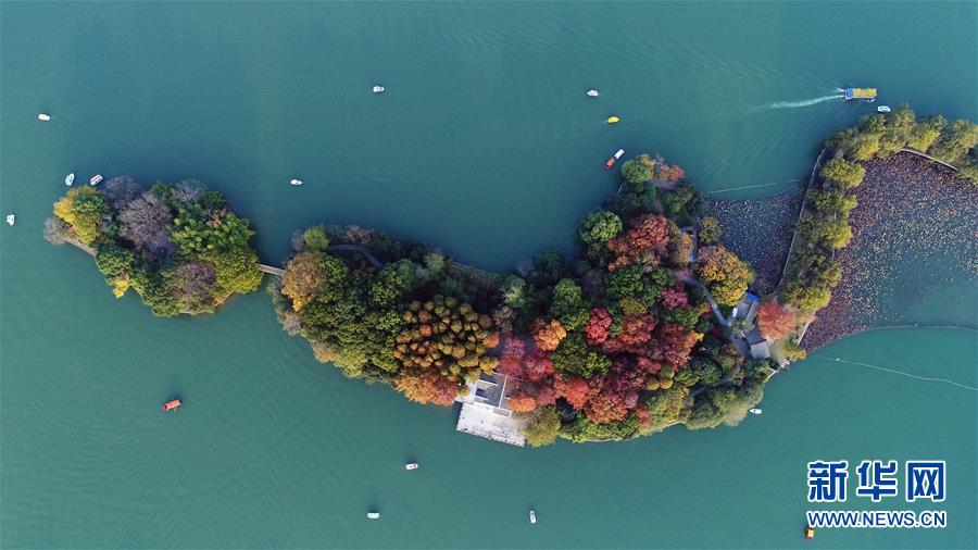 這是11月25日無人機拍攝的湖南烈士公園年嘉湖。新華社記者 李尕攝
