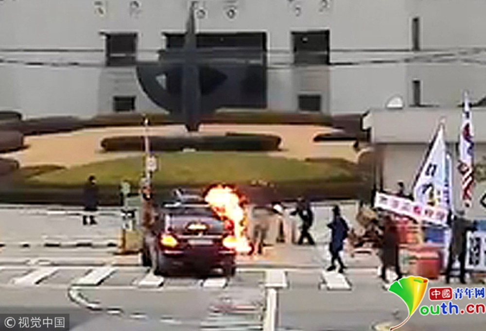 驚險(xiǎn)!韓國(guó)最高法院院長(zhǎng)上班途中被男子扔燃燒瓶