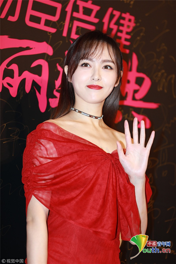 唐嫣紅色紗裙知性溫婉 胸前蝴蝶結(jié)點綴盡顯俏皮