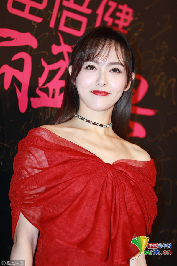 唐嫣紅色紗裙知性溫婉 胸前蝴蝶結(jié)點(diǎn)綴盡顯俏皮