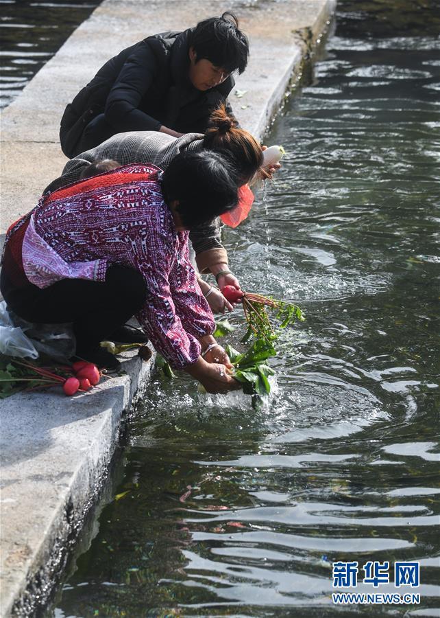 11月28日,月明村的村民在長豐澗溪水邊洗菜淘米。近年來通過實施河長制和水環(huán)境整治,長興縣夾浦鎮(zhèn)月明村對長豐澗進行了清淤,對河兩岸綠化進行了補植,修筑堰壩、蓄水引魚,兩岸種植花草,開辟河灘公園,實現(xiàn)了長豐澗景美、岸綠、水清、河暢的目標。 新華社記者 徐昱 攝