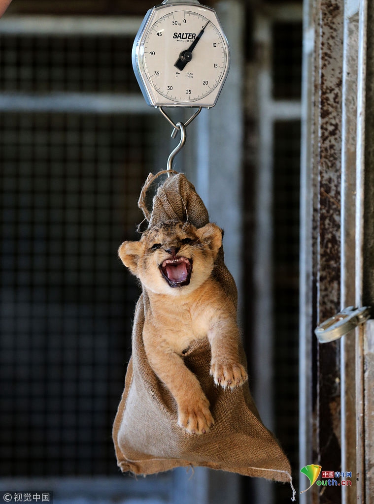 萌吐奶!動物體檢現(xiàn)場爆笑可愛 獅子被提起來稱重