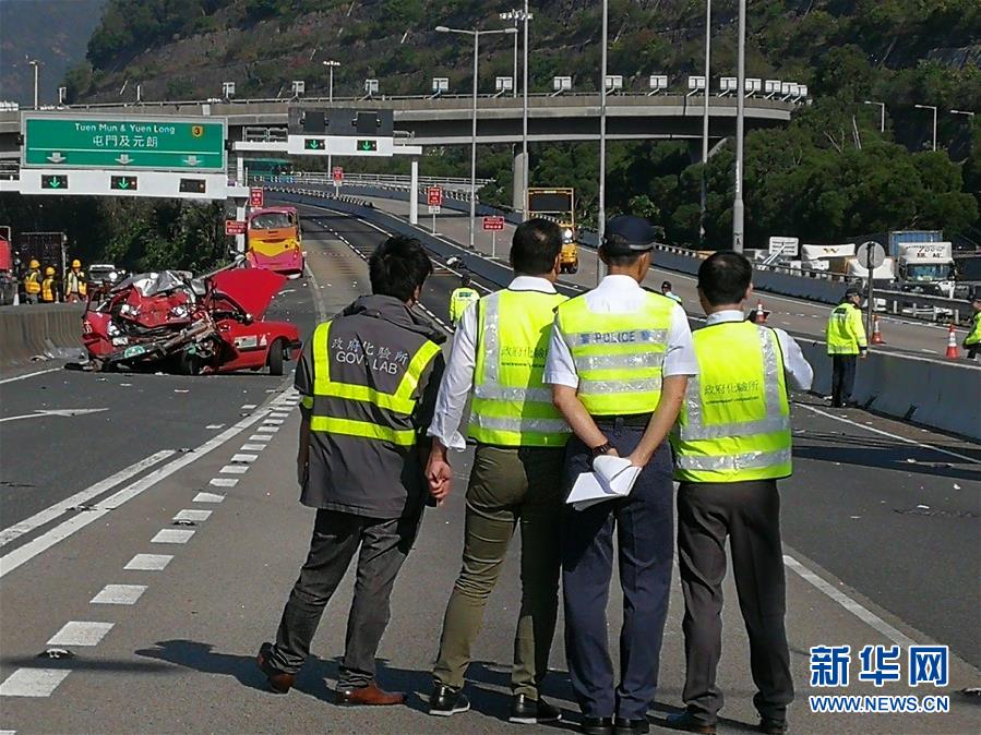 11月30日凌晨,香港青衣長青公路發(fā)生嚴重車禍,導(dǎo)致5人死亡,30多人受傷。目前所有傷者已被分別送到附近4家醫(yī)院,救援正在進行當中。 新華社記者 吳曉初 攝