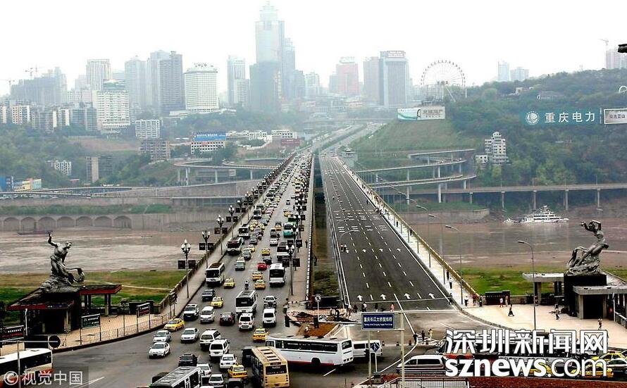 【跨度最大的梁橋——重慶石板坡長江復線大橋】重慶石板坡長江大橋復線橋跨徑330米,于2003年12月正式動工,2006年8月28日竣工通車,全長1103.5米,寬19米,為單向四車道,設計日通行能力8萬輛。