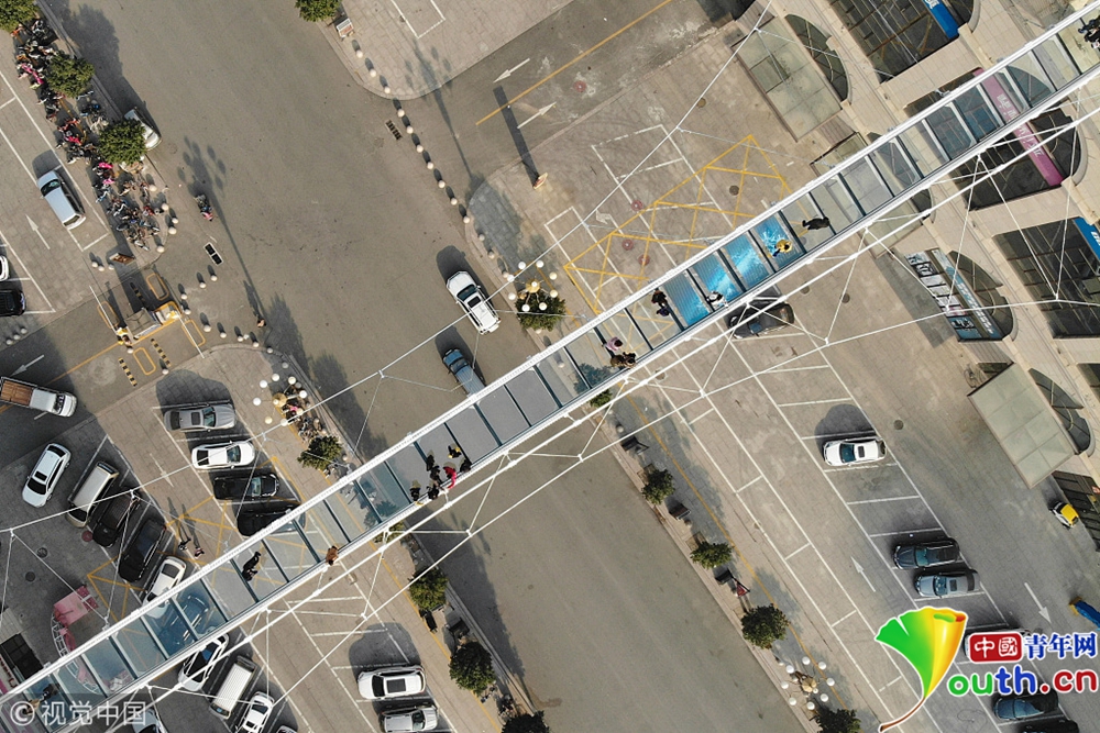 據(jù)現(xiàn)場(chǎng)的檢票工作人員介紹,這座玻璃吊橋是今年10月1日正式對(duì)外開放,每逢周末都會(huì)吸引很多人前來(lái)體驗(yàn),成了當(dāng)?shù)匾蛔熬W(wǎng)紅橋”。