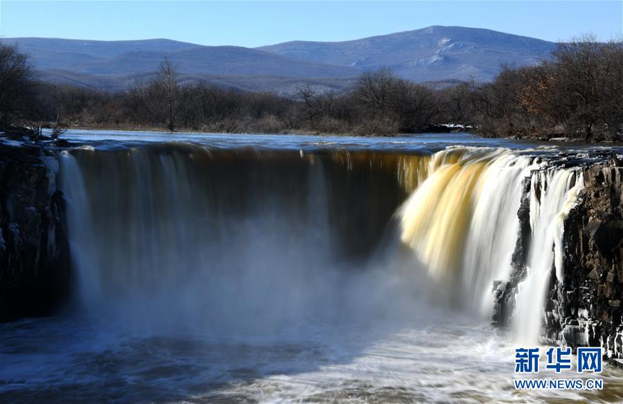 吊水樓瀑布的冬季飛瀑奇觀(12月5日攝)。 受上游來水量大和近期氣溫偏高等因素影響,位于黑龍江東南部的火山堰塞湖——鏡泊湖的吊水樓瀑布水量充沛,展現(xiàn)出飛流直下、水霧升騰的冬季奇觀,引來許多游人觀賞。 新華社記者王建威攝