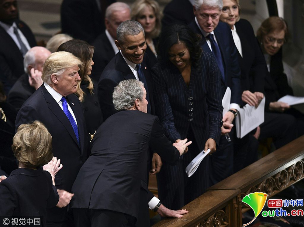 老布什國葬現(xiàn)“輕松”小插曲 小布什又給米歇爾“發(fā)糖”了!