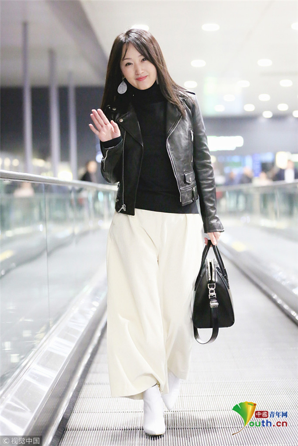 12月9日,上海,楊鈺瑩現(xiàn)身上海虹橋機場,她身著黑色皮衣的她搭配白色直筒褲,手提大牌包優(yōu)雅知性,長發(fā)披肩溫柔甜美似少女,見跟拍主動揮手示好,保養(yǎng)得當?shù)乃笮阊┌准∧w,不顯年紀!