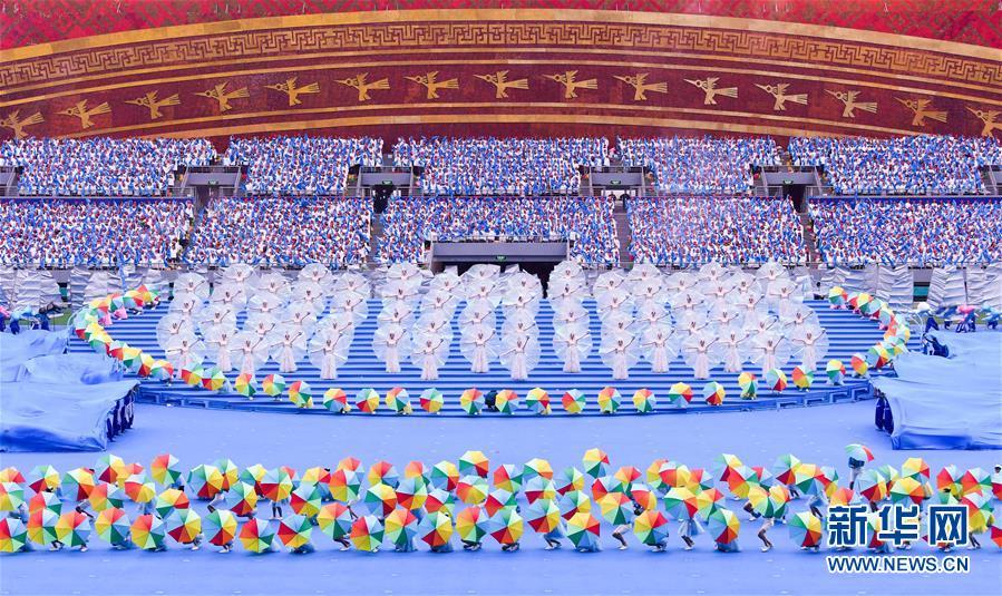 12月10日,廣西壯族自治區(qū)成立60周年慶祝大會在廣西體育中心隆重舉行。這是慶祝大會上的群眾文藝表演。 新華社記者 申宏 攝