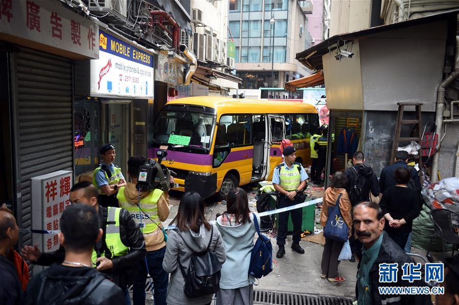 這是12月10日在香港北角拍攝的事故現(xiàn)場(chǎng)。 12月10日下午2時(shí)左右,香港北角發(fā)生車禍,一輛校巴沖上行人路。 新華社記者 盧炳輝 攝